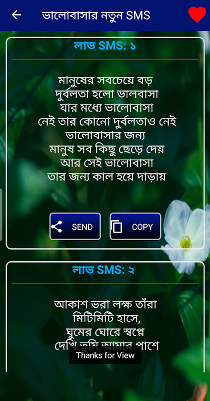 এই অ্যাপসটিতে যে সব মজার এসএমএস আছে তা অপনি বন্দুদের সাথে ১ কিল্কে কপি এবং শেয়ার করতে পারবেন ।
