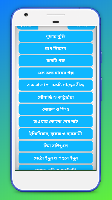 আজকে আপনাদের জন্য নিয়ে এসেছি বাংলা শিক্ষামূলক ছোট গল্প। এই অ্যান্ড্রয়েড মোবাইল অ্যাপটি থেকে গল্প পড়লে আপনারা অনেক কিছু শিখতে পারবেন। প্রতিটি গল্পে পাবেন অনুপ্রেরণা যা আপনাকে সামনে এগিয়ে যেতে সাহায্য করবে। এখন বাংলা গল্পের বই অনেক জনপ্রিয়। সবাই বইয়ের লাইব্রেরি থেকে রূপকথার গল্প, রোমান্টিক ভালোবাসার গল্প, বিখ্যাত ব্যক্তিদের মজার কাহিনী, ভূতের গল্প, গোপাল ভাঁড়ের গল্প ও ঈশপের গল্প সহ অসংখ্য বাংলা বই নিয়ে থাকেন। তাই আমরা আপনাদের জন্য এই মোবাইল অ্যাপটি নিয়ে এসেছি। এছেরাও আমাদের অন্যান্য অ্যাপ পাবেন প্লে-স্টোর। আপনার যা প্রয়োজন তা আপনি ডাউনলোড করে নিতে পারবেন একদম ফ্রি । আশা করি এই শিক্ষামূলক গল্প অ্যাপটি আপনাদের ভাল লাগবে। তাই আর অপেক্ষা না করে আমাদের মোবাইল অ্যাপটি আজই ডাউনলোড করুন।