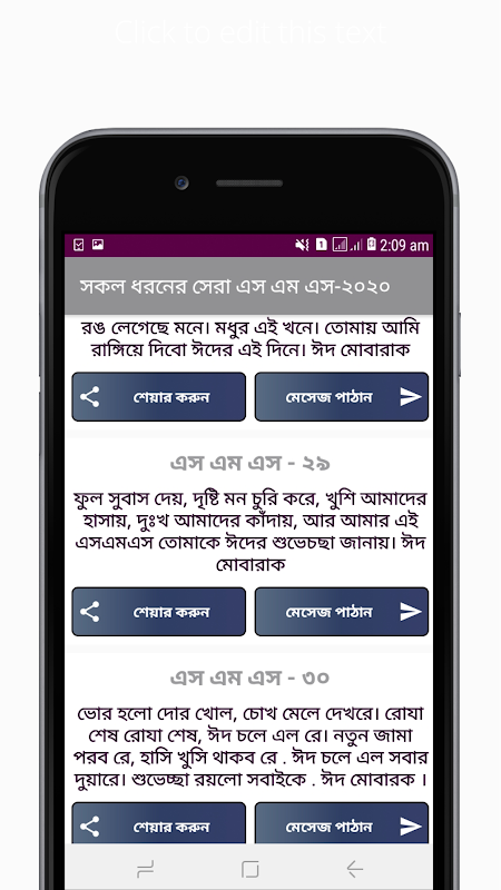 অতএব, আজকের আমাদের এই বাংলা অ্যাপটি সকল ধরনের নতুন সব এস এম এস দিয়েই আপনাদের জন্য সাজানো, আশা করি অ্যাপটি আপনাদের সবাইকে অনেক উপকৃত করবে।