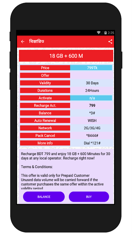 Cette application est simple, efficace et indispensable pour quiconque utilise une carte SIM bangladaise. Alors que des milliers d'utilisateurs en bénéficient déjà, c'est maintenant à votre tour. Que vous soyez étudiant, voyageur, homme d'affaires ou simplement quelqu'un qui souhaite les meilleurs forfaits Internet et voix, cette application est faite pour vous.