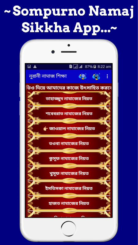 সকল ধরনের নামাজ শিক্ষার অ্যাপলিকেশন।
