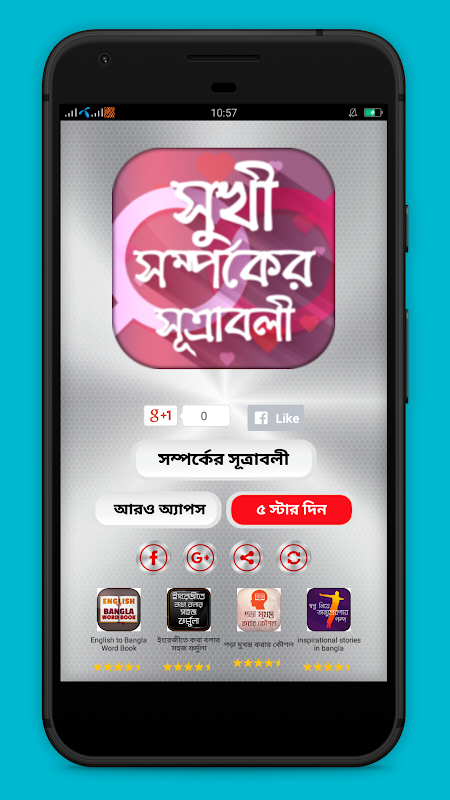 সম্পর্ক কিভাবে মধুর হবে সেই কথা চিন্তা করে আমরা বিভিন্ন বিশেজ্ঞ ব্যাক্তির গবেষনা থেকে একটি “সুখী সম্পর্কের সূত্রাবলী” মোবাইল এ্যাপ তৈরী করেছি। আপনার সম্পর্ক সুখি এবং মধুর করার জন্য আমাদের এ্যাপটি নামিয়ে নিন। আমাদের এ্যাপটি যদি ভাল লাগে তাহলে অবশ্যই ৫ স্টার দিয়ে রেট করুন।
