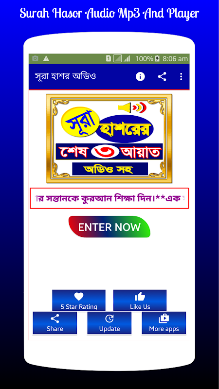 সূরা হাশর অনেক ফজিলতপূর্ণ সূরা।এই অ্যাপটিতে সূরা হাশর আরবি, বাংলা উচ্চারণ, বাংলা অর্থ অডিও এবং এর ফজিলত দেওয়া হয়েছে।