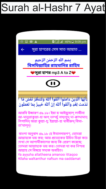 À propos de সূরা হাশরের শেষ সাত আয়াত অডিও (Offline Audio)
