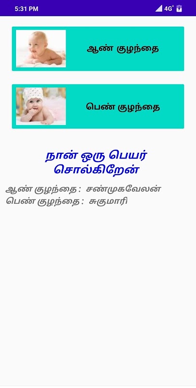 Hindu Baby Names Tamil est une application Android qui vous suggère les noms et leur signification en langue tamoule.L'application est entièrement exploitée en tamoul.Elle est entièrement gratuite.