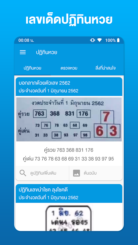 - แตะเพื่อดูรูปภาพปฏิทินหวย และสามารถซูมเข้า/ออก