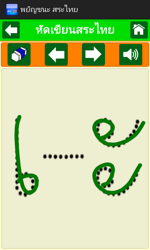 1.หัดเขียน ผู้ใช้สามารถลากเส้นตามตัวอักษรที่กำหนดให้
