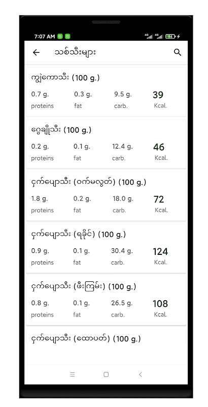 ကယ်လိုရီတန်ဖိုးများ 1.0.8