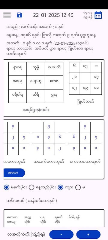 Cette application peut facilement calculer Mahabote et d'autres données de l'astrologie du Myanmar.