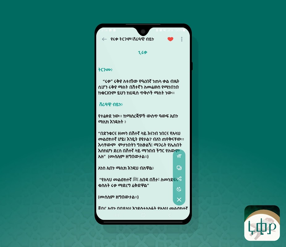 አፑን ለሙስሊሙ ኡማ በማሰራጨት የኸይር ሰበብ የአጅር ተቋዳሽ ይሁኑ።