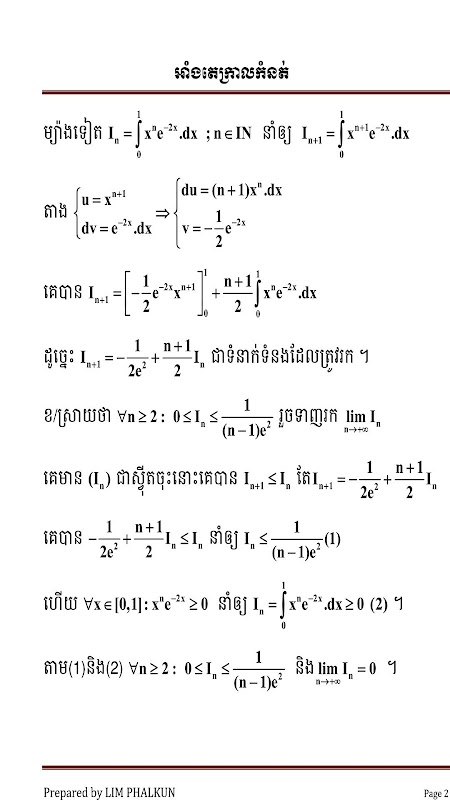 នេះគឺជាកម្មវិធីទាក់ទងនិងគណិតវិទ្យា ជាសៀវភៅគណិតវិទ្យា អាំងតេក្រាលកំណត់ ដែលបានរៀបចំឡើងជាមួយទូរស័ព្ទ