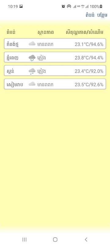 Une application pour suivre les informations météorologiques dans votre région en khmer.