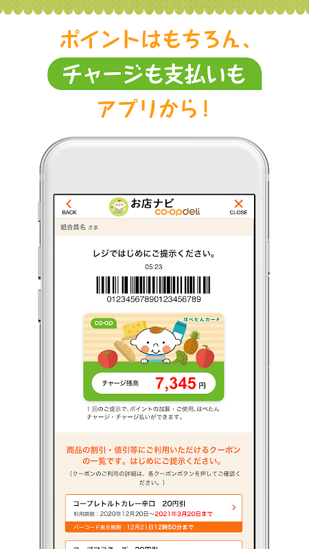 ● si vous enregistrez les informations de la carte de points Co-op, vous pouvez vérifier et demandes de solde et l'historique des points, l'historique des achats
