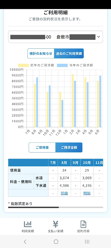 Vous pouvez consulter la consommation d'eau et l'état du paiement.
