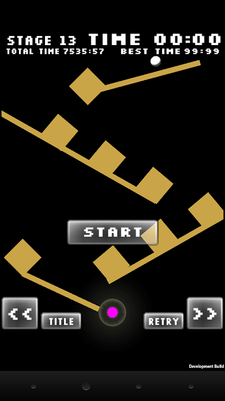 スマフォを傾けて、白い玉をゴール(赤)へ移動させよう 急な角度で玉の速度は上がります、その分操作は難しくなるのは必至! ある時は慎重に、ある時は大胆に!