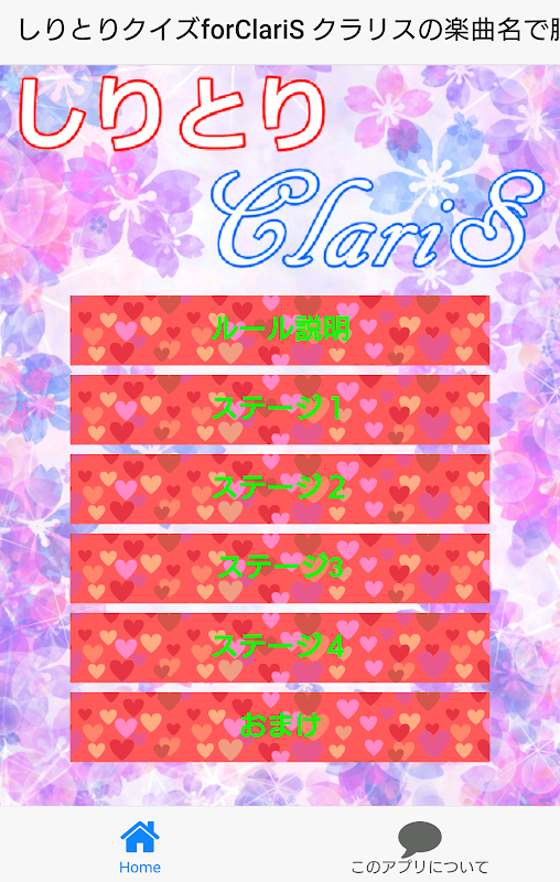 大人気アニソン歌手ユニット『ClariS』(クラリス)の楽曲名を、しりとりで遊ぶ無料のクイズアプリです。