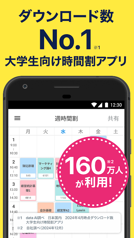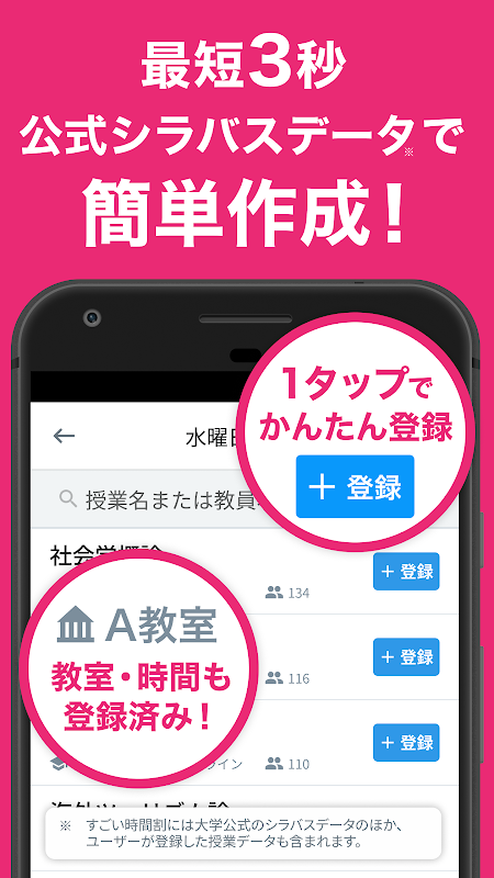 N°1 des applications d'emploi du temps téléchargées pour les étudiants universitaires. Plus de 5,2 millions de données de classe ! *2 Créez un emploi du temps très facilement grâce à un fonctionnement intuitif. Vous pouvez également gérer les présences et les missions !