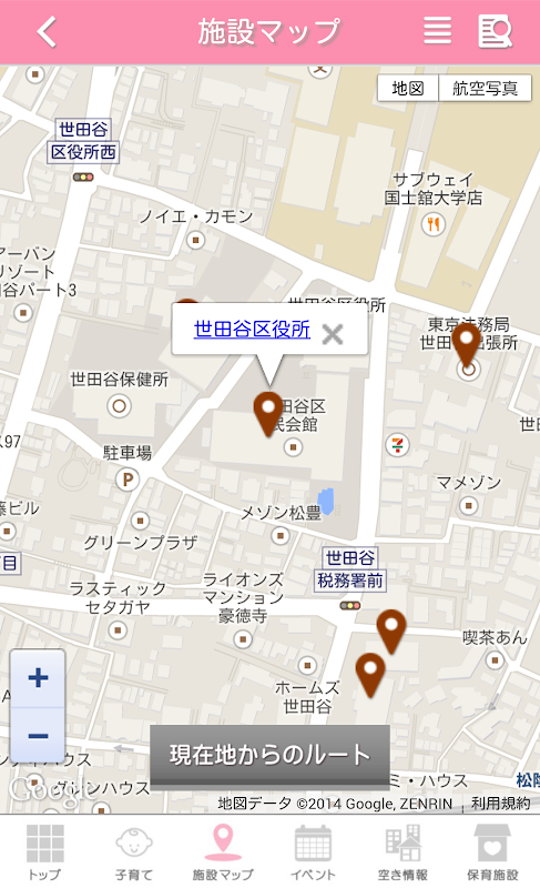世田谷区の子育て支援情報や乳幼児の健康診断・予防接種のお知らせ等の提供や、幼稚園・保育園を現在地からの距離等の条件から検索することができるアプリです。