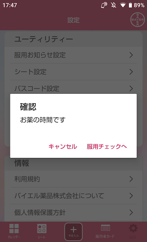 Il s'agit d'une application de prise en charge médicamenteuse fournie par Bayer Yakuhin, Ltd.