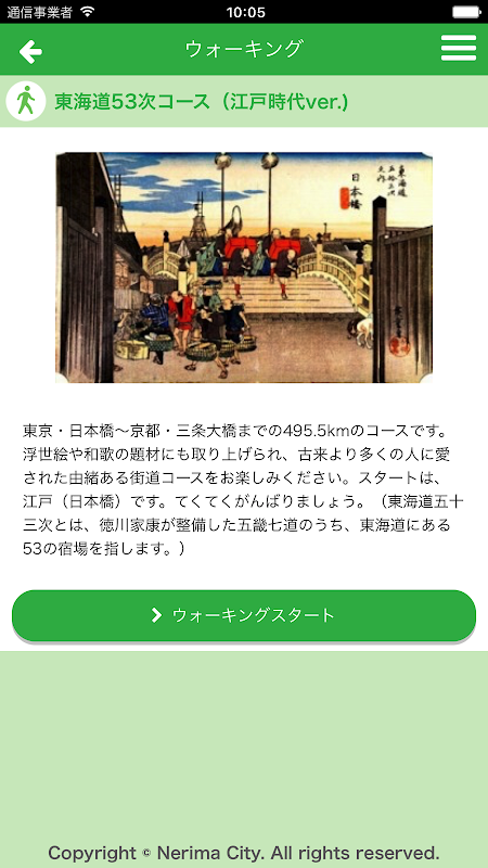 歩数を距離に換算し、実際にコースを歩かなくても、選択したコースを踏破することができます。東海道53次コースや箱根駅伝コースなど、忙しくてなかなか歩いたり運動できない人も楽しめます。