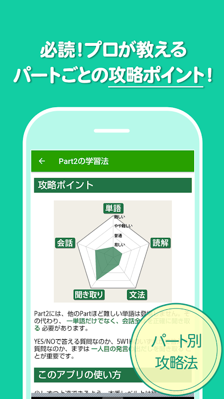 En plus de l'écoute et de la lecture (grammaire, vocabulaire, etc.), un total de 2366 questions comprenant des problèmes de mots anglais par score cible sont inclus.