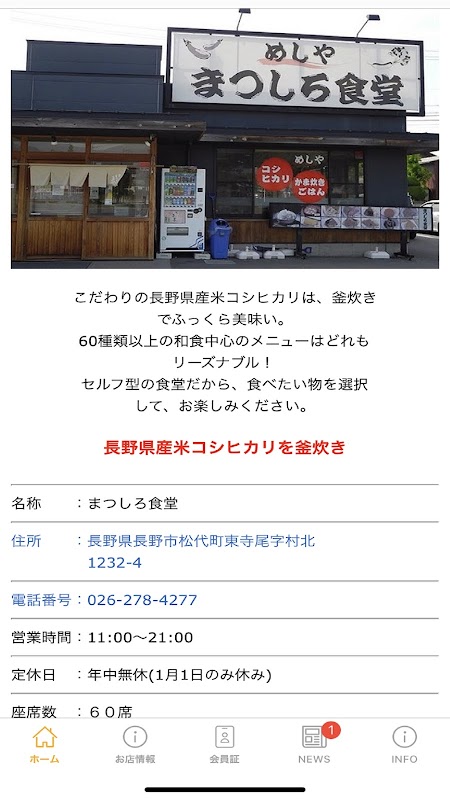 Près de l'échangeur de Nagano, il s'agit d'une application officielle de type "Matsushiro Shokudo". Les membres de l'application reçoivent les dernières informations, des informations sur les événements, des coupons de réduction, etc.