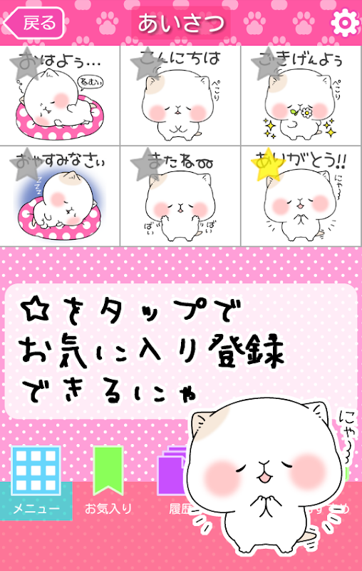 LINEなどでスタンプみたいに使える便利なもちねこの画像集アプリです