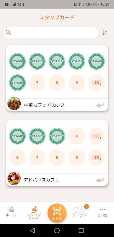 貯まったスタンプに応じて、そのお店で利用できるクーポンがもらえます。