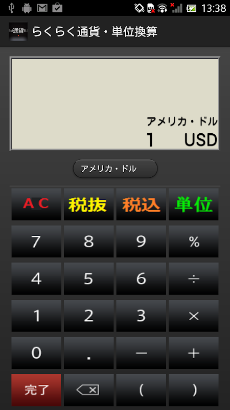 数値入力するキーパッドは電卓の機能も併せ持っており、通貨・単位を計算して換算するときにとても便利です。