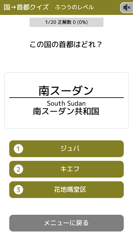 国名から3択で首都を当てるクイズです。