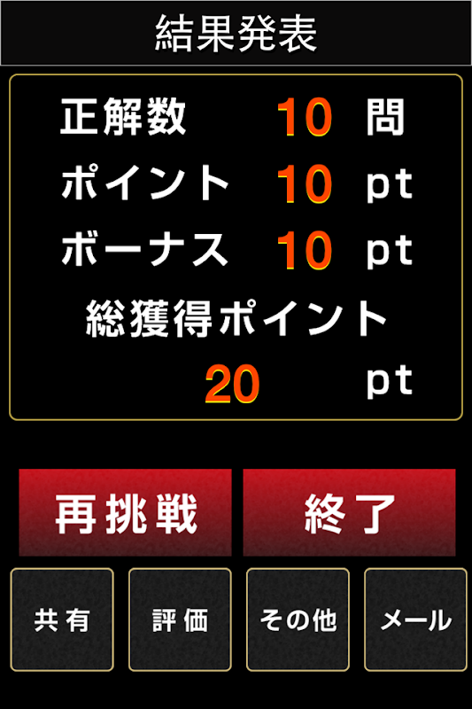 1問正解で1pt(ボーナス10pt)