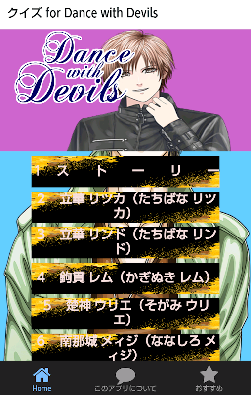 This is a quiz app on the Japanese anime "Dance with Devils".