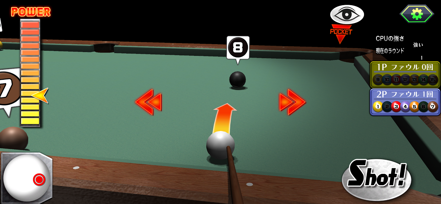 Un billard 3D authentique qui peut être utilisé avec une torsion en changeant la force de frappe et le point de frappe.