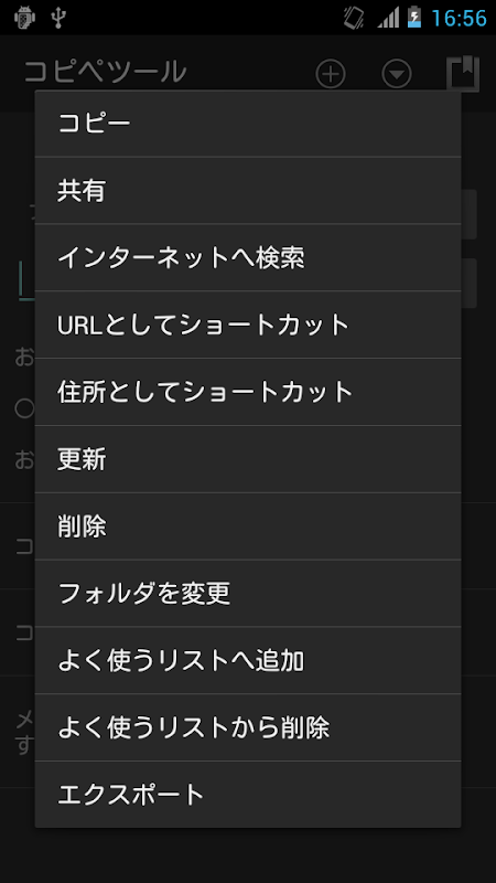 よく使う単語や文章(長文可)などを事前に登録しておき、必要な時にクリップボードにコピーすることで最小限の入力で済ませることができるアプリです。