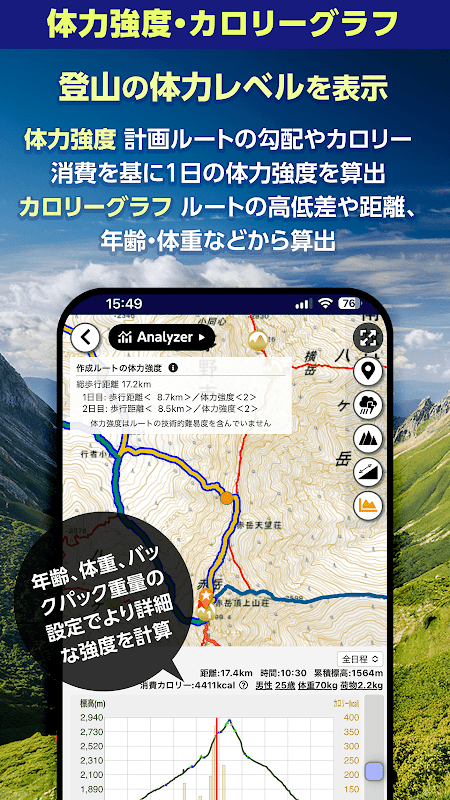 L'application Compass EX permet d'envoyer des notifications d'escalade en montagne dans tout le pays. Lors de la création d'un plan d'escalade, vous pouvez consulter la pente du parcours, l'intensité de la marche prévue, les informations météorologiques, les heures de lever et de coucher du soleil, etc. Pendant l'ascension, même hors de portée de communication, vous pouvez vérifier votre position actuelle grâce à une carte d'escalade téléchargée à l'avance et un satellite GPS. Vous pouvez également utiliser la navigation pendant l'ascension et partager votre position avec les contacts d'urgence enregistrés à l'avance.