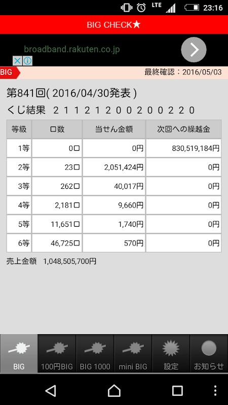 サッカーくじのBIG、100円BIG、BIG1000、mini BIGの結果を簡単に確認できる無料アプリ。試合結果と口数や当せん金額を速報としてお知らせします。