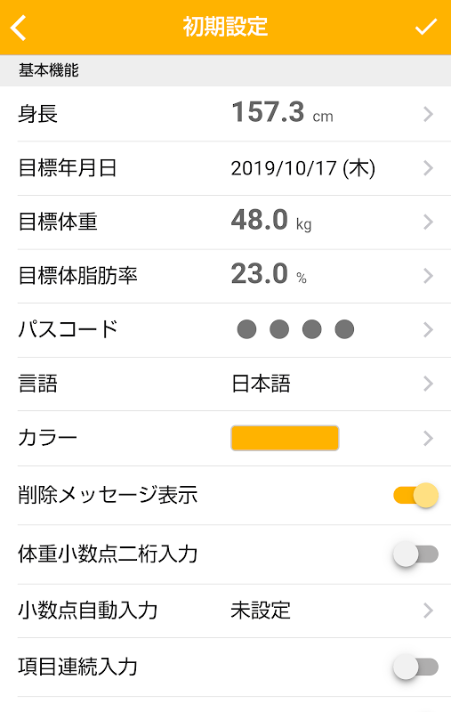 - Fonction de saisie de la date cible, du poids cible et du pourcentage de graisse corporelle.