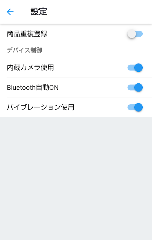 商品重複登録:ONに設定した場合、同一商品のバーコードを読み取りを許可します。