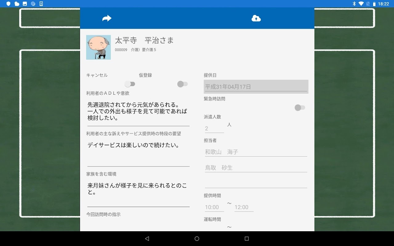 Vous pouvez appréhender l'horaire quotidien à partir des contenus gérés dans le carnet de soins de longue durée à domicile. Il peut répondre à des changements soudains de personnel et de temps.