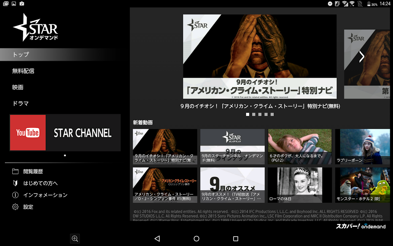 最新「ハリウッド映画」や「海外ドラマ」が"いつでも"見放題。見逃した映画や新作ドラマまで、スターチャンネルご加入者なら"無料"で何度でもお楽しみいただけます。