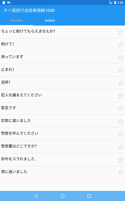 覚えたい単語やフレーズは長押しでお気に入りに登録できます。