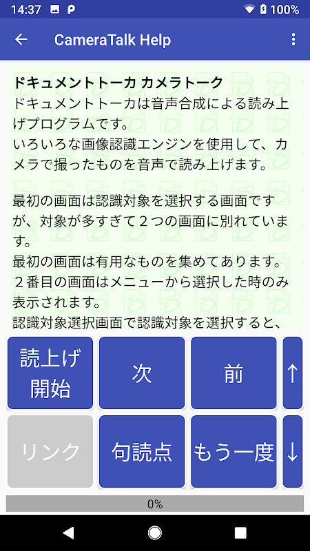 Document caméra causeur talk est un programme lu par la caméra et la synthèse vocale. Le monde est photographié à huis clos, j'ai essayé de changer la voix.