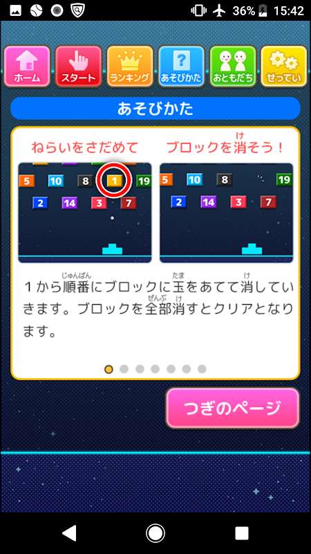 あそんでまなぶ!シリーズのナンバーシューターです。 ランダムに並んだ数字ブロックを1から順番に消しながら数字を覚える知育アプリです。