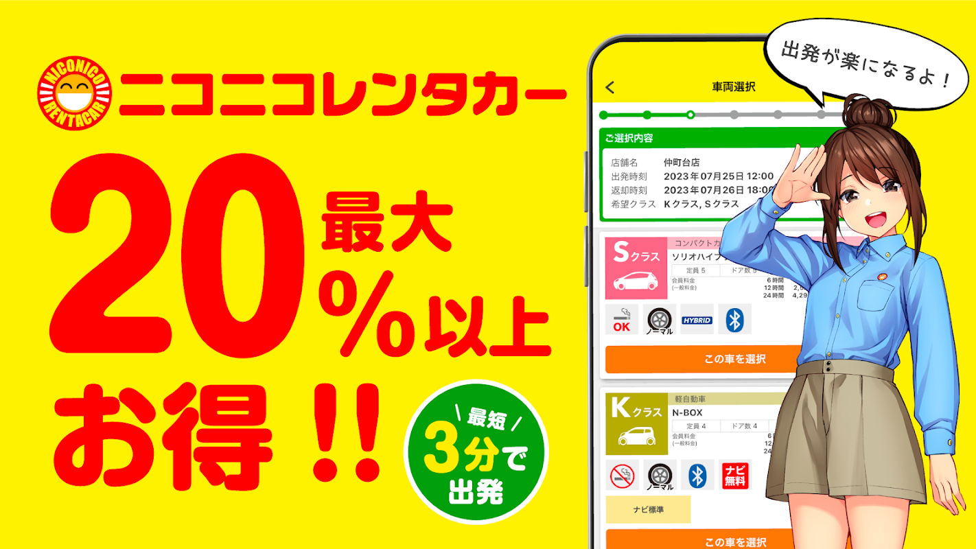 Vous pouvez rejoindre Nico Ren Mate, qui vous permet d'utiliser facilement Nico Nico Rent-A-Car à prix réduit.