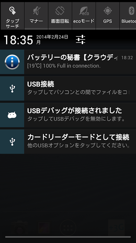 バッテリーの状態変化を監視して通知を行いますが、マナーモード中は音が鳴りませんのでご注意ください。