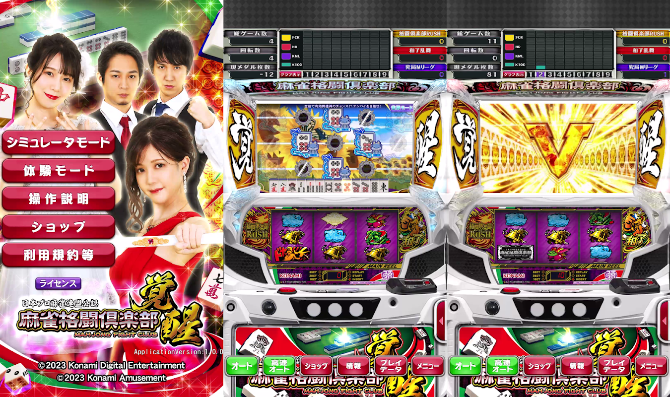 Cette application est une application de simulation pour "Pachislot Mahjong Fighting Club Awakening". Les fonctions de lecture automatique, de lecture automatique à grande vitesse et de réduction de poids peuvent être utilisées gratuitement sans aucune restriction de jeu.