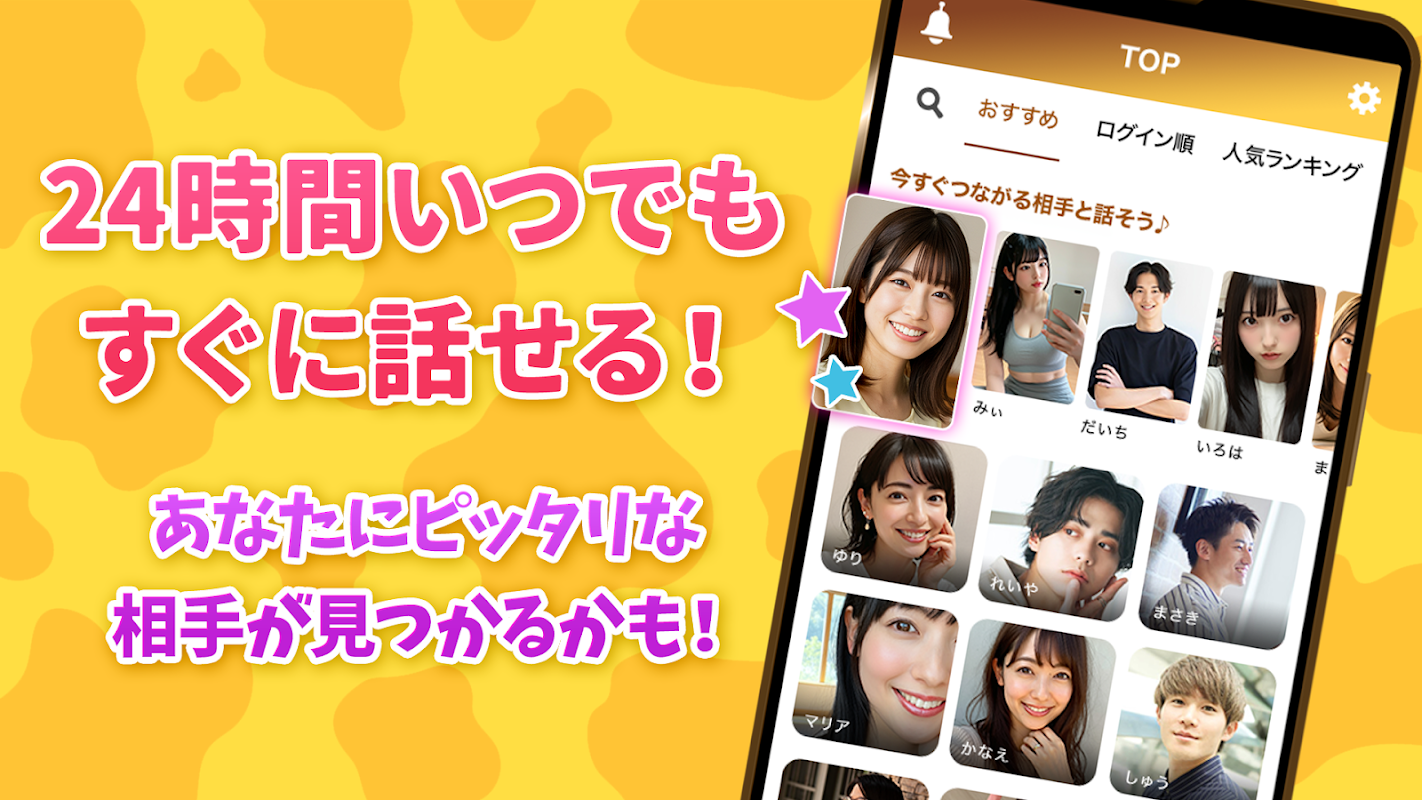 ・Fonction de chat aléatoire qui vous permet de vous connecter instantanément avec les personnes qui vous intéressent !