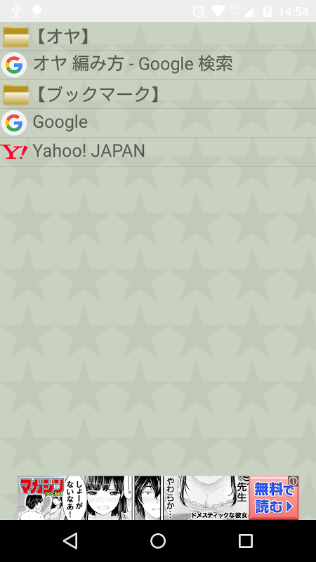標準ブラウザのブックマークで登録したホームページをフォルダーで管理できるアプリです たくさんのブックマークをすっきり整理する事が出来ます