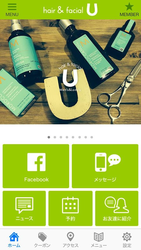 このアプリでは、ヘアー&フェイシャルUの色々な情報やアプリユーザー限定のお得なサービスが手に入ります!