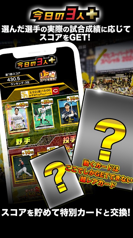 Vous pouvez également échanger les « cartes de joueur » que vous collectez avec d'autres joueurs et les utiliser pour soutenir vos joueurs préférés dans « Today's Three Players+ ».